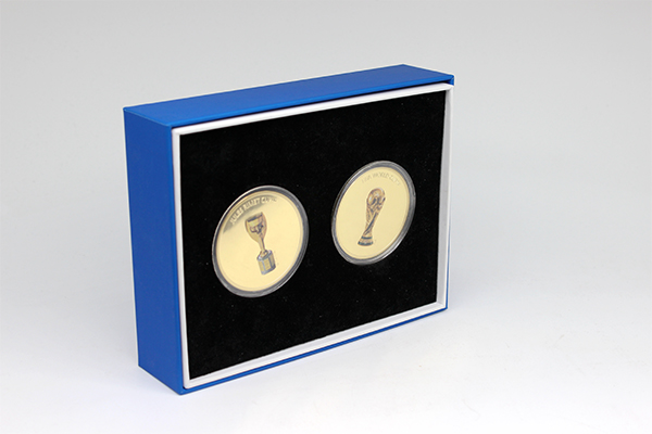 此為2枚禮盒裝FIFA國際足球聯(lián)合會(huì)紀(jì)念幣設(shè)計(jì)制作案例,深圳市聚福和文創(chuàng)實(shí)業(yè)有限公司是一家集設(shè)計(jì)、生產(chǎn)、制作于一體的文創(chuàng)產(chǎn)品定制廠家,為企業(yè)提供金銀紀(jì)念章設(shè)計(jì)制作解決方案。公司免費(fèi)文創(chuàng)設(shè)計(jì),專業(yè)定做純金、純銀、銅、鋅合金等各種材質(zhì)紀(jì)念幣、紀(jì)念章章,找廠家批量定制紀(jì)念幣,紀(jì)念章就找聚福和。