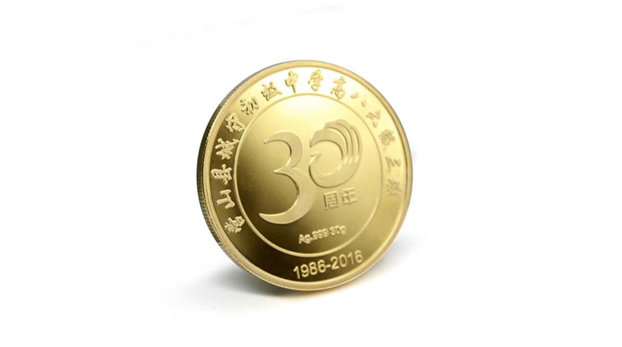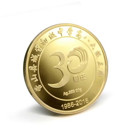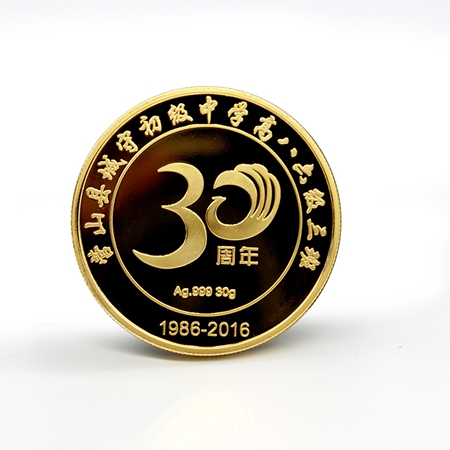 此為四川省營山縣城守初級中學30周年純金紀念章設計制作案例,深圳市聚福和文創實業有限公司是一家集設計、生產、制作于一體的文創產品定制廠家,為企業提供金銀紀念章設計制作解決方案。公司免費文創設計,專業定做純金、純銀、銅、鋅合金等各種材質紀念幣、紀念章章,找廠家批量定制紀念幣,紀念章就找聚福和。