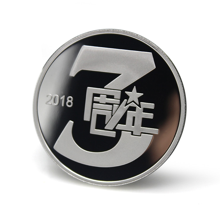 深圳市聚福和包裝制品有限公司是一家集設計、生產、制作于一體的文創紀念章定制廠家,為企業提供金銀紀念章設計制作解決方案。公司免費文創設計,專業定做純金、純銀、銅、鋅合金等各種材質紀念幣,此案例為三周年慶純銀紀念章定制