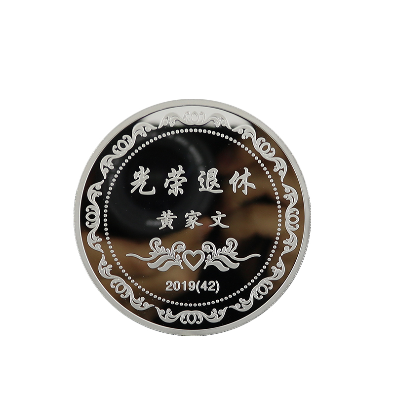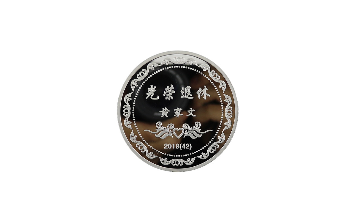 深圳市聚福和包裝制品有限公司是一家集設計、生產、制作于一體的文創紀念章定制廠家,為企業提供金銀紀念章設計制作解決方案。公司免費文創設計,專業定做純金、純銀、銅、鋅合金等各種材質紀念幣,此為單位退休紀念銀幣定制,光榮退休銀幣定做案例